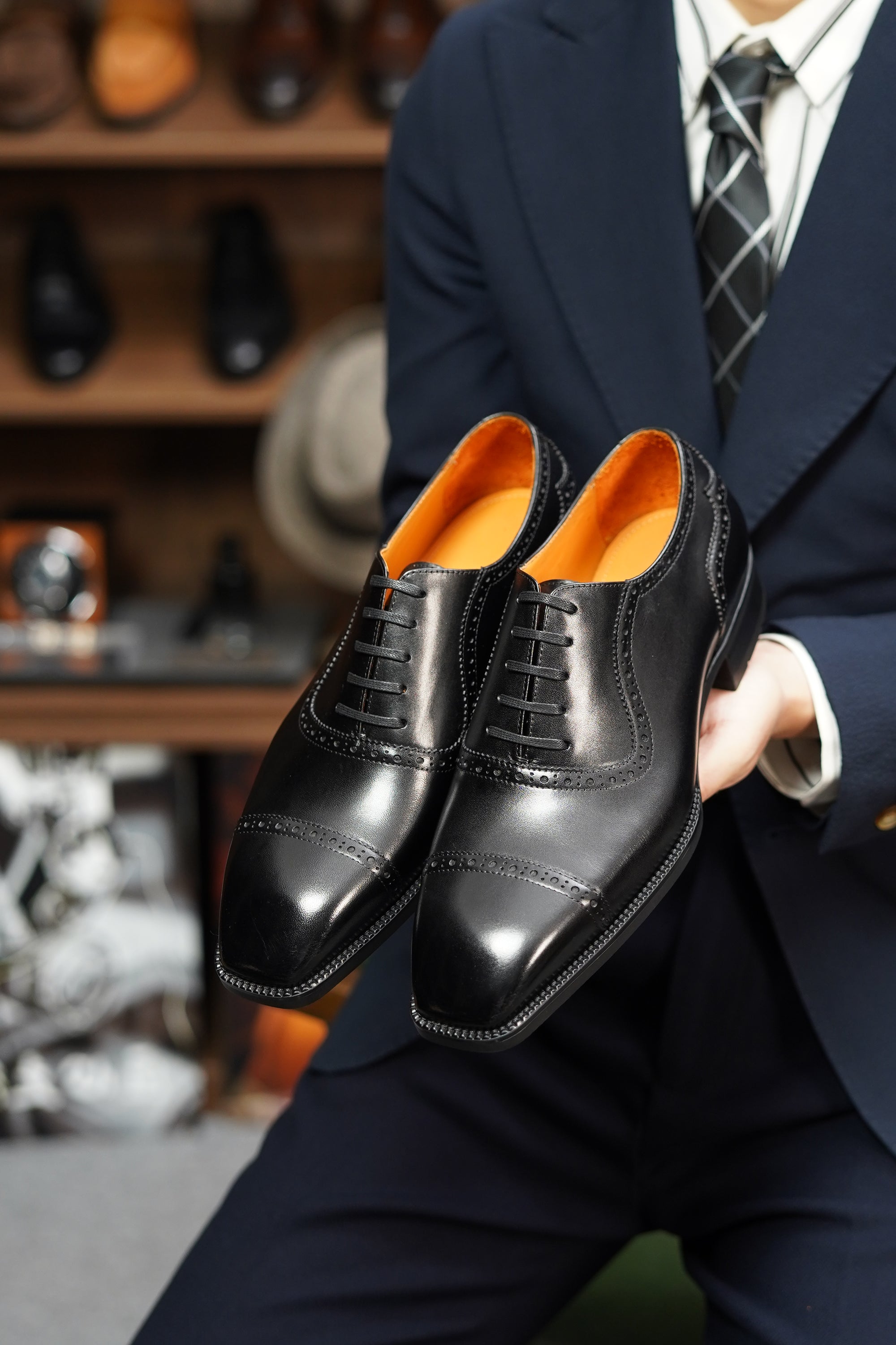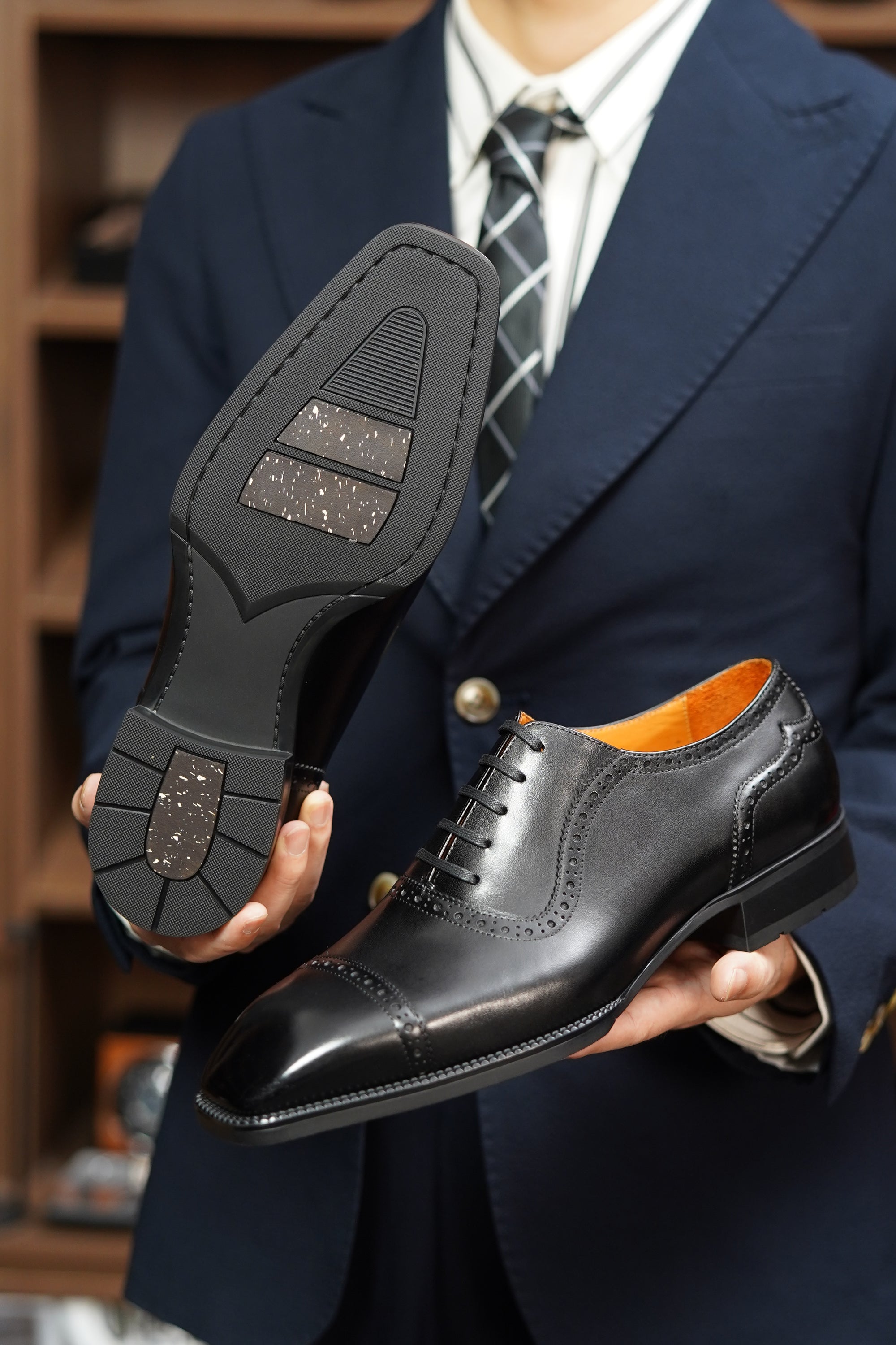 Classic brogue detailing meets premium Italian leather craftsmanship for a sophisticated look.